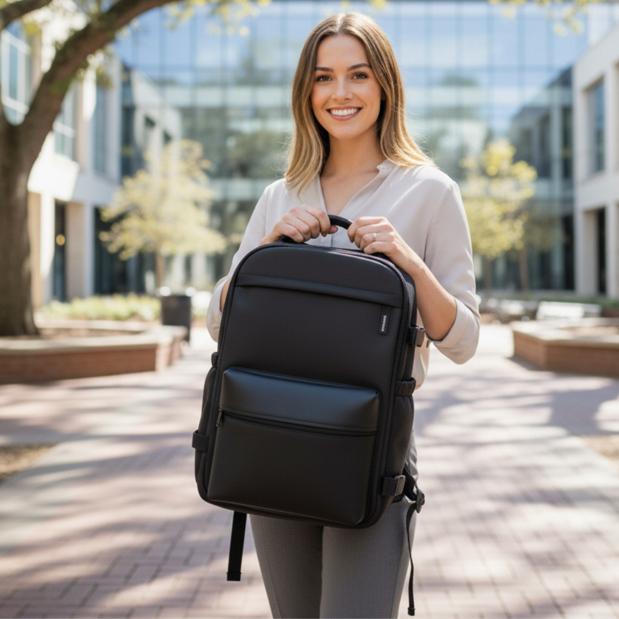 גשם או קפה שנשפך לא צריכים לסכן את הלפטופ והבגדים. התיק שלנו עם טכנולוגיית אטימה למים מגן על התכולה ושומר עליה יבשה בכל מצב.